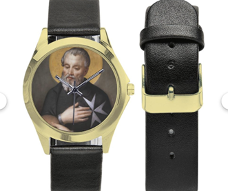 One of the greatest miracles of Blessed Gerard’s is that when he was bringing food to those in need, he was stopped by hostile forces. They asked to see what he was carrying, and when he showed them, it was only stones. In depictions of Blessed Gerard, he is often shown gently touching the cross of Malta with one hand and holding a loaf of bread in the other. If this image is important to you, perhaps you’d like an hourly reminder of it, in which case, this watch may be of interest to you. What time is it? Time to care for the sick, friendless, and needy like Blessed Gerard.